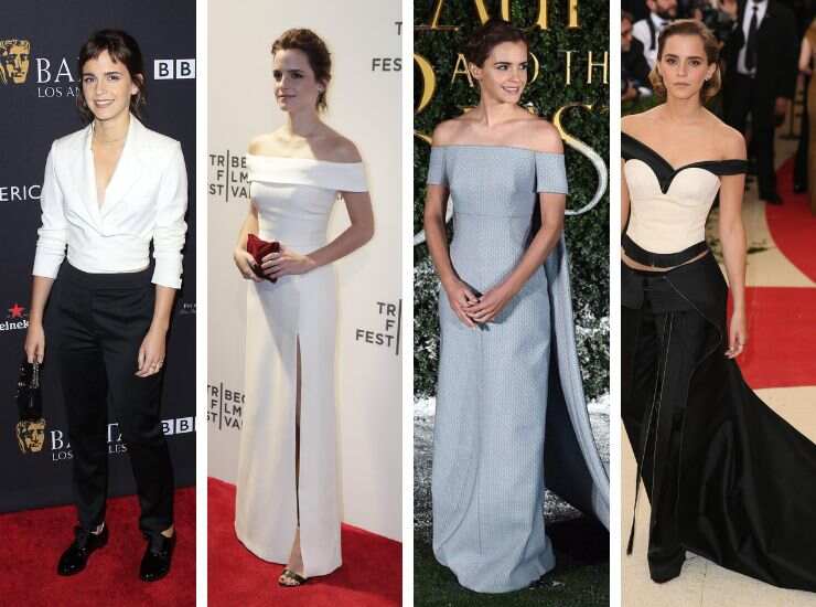 Sul red carpet dei BAFTA 2018, Emma Watson ha preferito l’eleganza semplice con un completo black&white di Osman, collezione Resort 2018. Al Tribeca Film Festival 2017, per l’anteprima di The Circle, ha sfoggiato un long dress bianco perla in raso con scollo a barchetta di Burberry. In aggiunta ha scelto una clutch in velluto magenta. All’anteprima londinese de La bella e la bestia per Disney, invece, ha scelto un abito azzurro pastello con mantella di Emilia Wickstead. Infine, al Met Gala 2016, ha proposto un abito black&white che Calvin Klein ha realizzato con Eco Age utilizzando quasi interamente bottiglie di plastica riciclata.