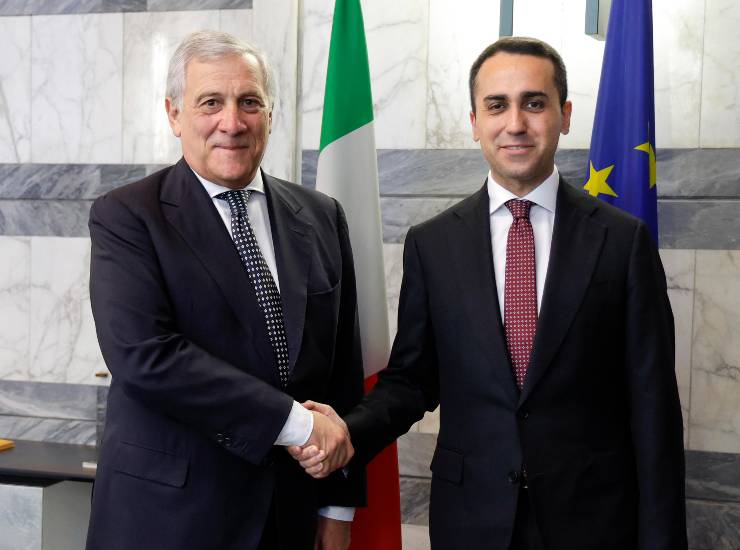 Il ministro degli Esteri Tajani col suo predecessore Di Maio. Foto Ansa/Giuseppe Lami
