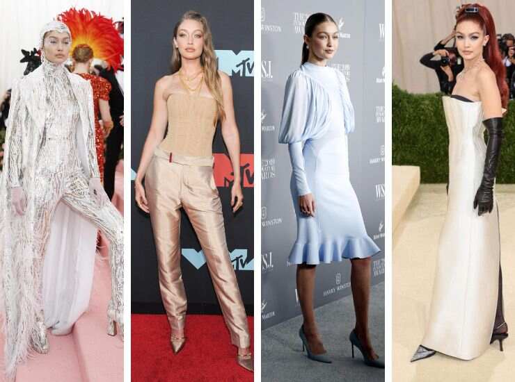 Allo stesso evento, ma per l’edizione 2021, ha invece scelto una creazione di Prada, un abito in raso color avorio abbinato ad un’acconciatura retrò e guanti in pelle drappeggiati. Sul red carpet dei WSJ Magazine Innovator Awards del 2019, ha optato per un minidress ceruleo con rouches e maniche a sbuffo plissé di Burberry, a cui ha abbinato décolleté di Jimmy Choo. Infine, agli MTV VMAs dello stesso anno, ha calcato il red carpet con sua sorella Bella Hadid proponendo un completo in raso con bustier rigido di Tom Ford.