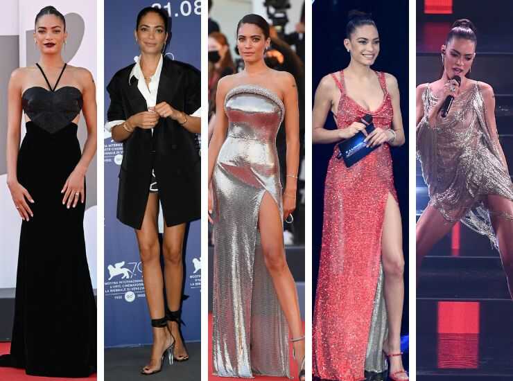 Il 2022 invece è stato l’anno di Elodie alla Mostra del Cinema di Venezia. Sul red carpet, per presentare Ti mangio il cuore, la cantante ha indossato un long dress total black con corpetto a forma di cuore ancora una volta di Valentino Haute Couture, collezione Autunno/Inverno 2022/2023. Per il photocall, invece, ha indossato un blazer dress con camicia bianca, a cui ha abbinato sandali Valentino Garavani. Non è la prima volta di Elodie a Venezia. È già apparsa sul red carpet della kermesse per l’edizione 2020, fasciata in un abito argentato di Versace, a cui ha abbinato sandali gioiello. Nel 2021, invece, ha partecipato a Sanremo come co-conduttrice. Per l’occasione ha sfoggiato vari look, tra cui un long dress rosso effetto sparkling di Versace. In aggiunta ha proposto gioielli Bulgari. Il minidress champagne, effetto gioiello, è invece di Oscar de la Renta.