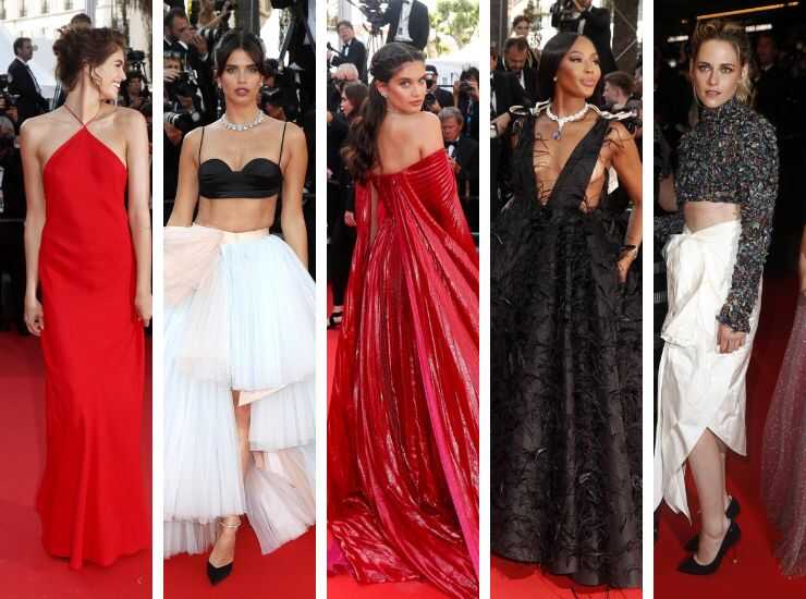 Kaia Gerber ha incantato con la sua semplicità, fasciata in un abito rosso corallo con scollo all’americana costum di Celine, realizzato per essere un omaggio alla mamma Cindy Crawford. Un’altra veterana del Festival di Cannes è Sara Sampaio. Per l’edizione 2022, ha optato per due look: un completo con gonna in tulle che rincorre sfumature pastello e crop top in raso nero di Off-White con gioielli Bulgari e decolleté gioiello Jimmy Choo. Il secondo è un long dress rosso con dettagli plissé di Zuhair Murad. Naomi Campbell ha proposto una creazione di Valentino Haute Couture total black con gonna tempestata di piume. Kristen Stewart, invece, ha sfoggiato un completo gonna bianca drappeggiata e blusa gioiello di Chanel.