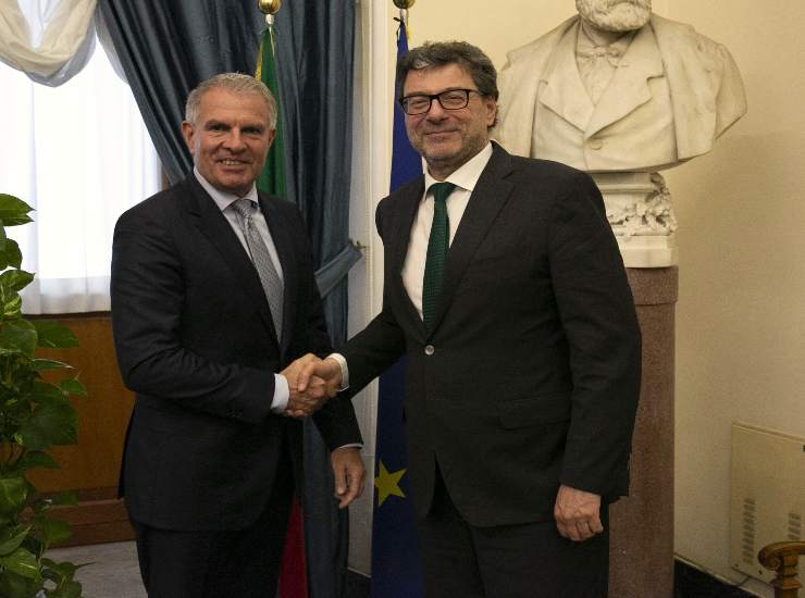 Il ministro Giorgetti col Ceo Lufthansa, Spohr. Foto Twitter @MEF_GOV