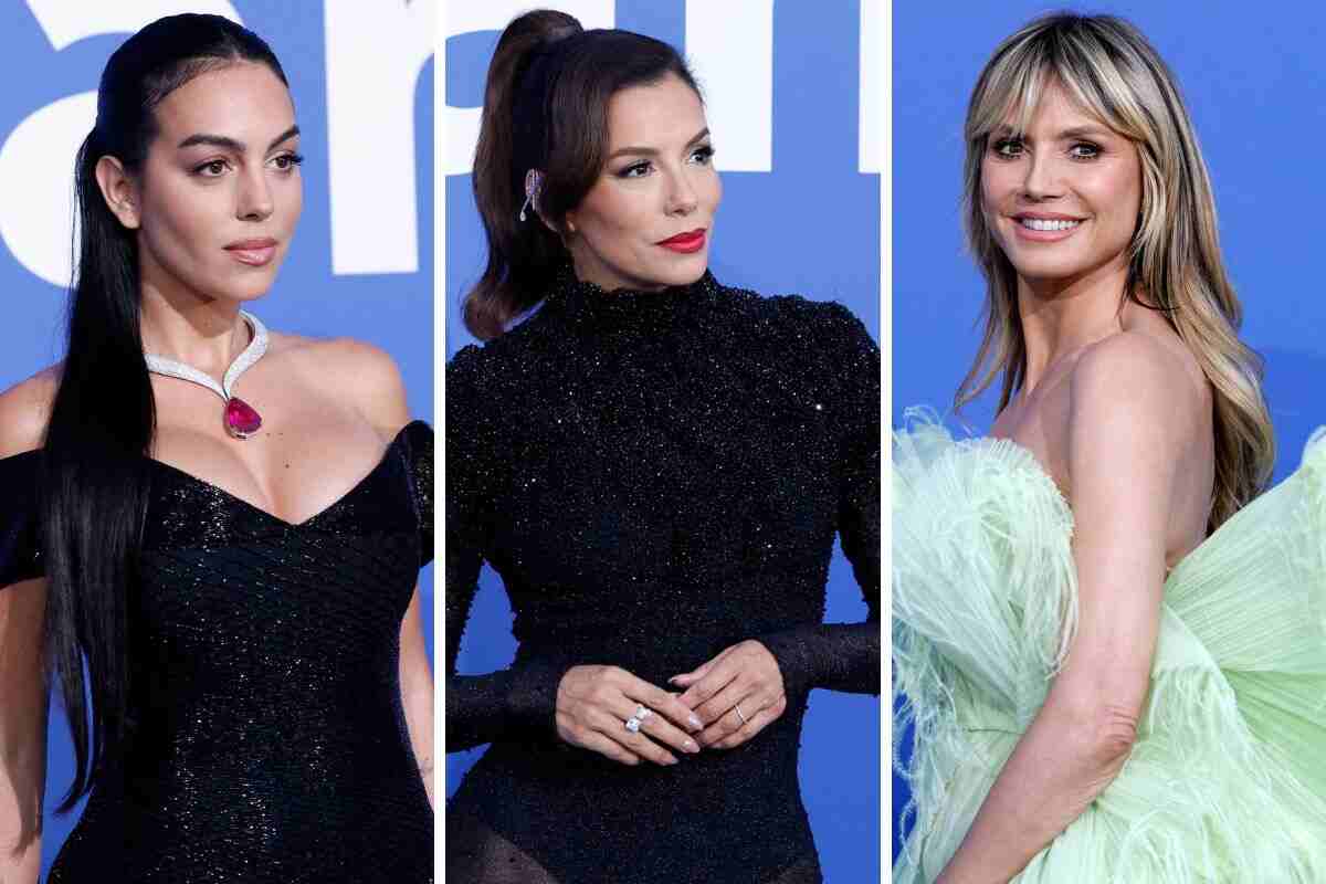 Anche Alessandra Ambrosio è apparsa all’evento di gala, in un abito in avorio che gioca con le trasparenze di Dundas, accompagnato da una mantella di piume e gioielli Pomellato. Bis anche per Georgina Rodriguez. Dopo il doppio red carpet in quel di Cannes, l’influencer ha sfoggiato un tubino total black, con scollo a barchetta e spacco laterale della gonna, un abito costum di Ali Karoui Couture, a cui ha abbinato un collier di Chopard. Heidi Klum è una delle più grandi conferme glam di questa edizione di Cannes e non si smentisce neppure al gala, con un abito verde pastello ravvivato da piume e balze con mantella vaporosa di Georges Hobeika.