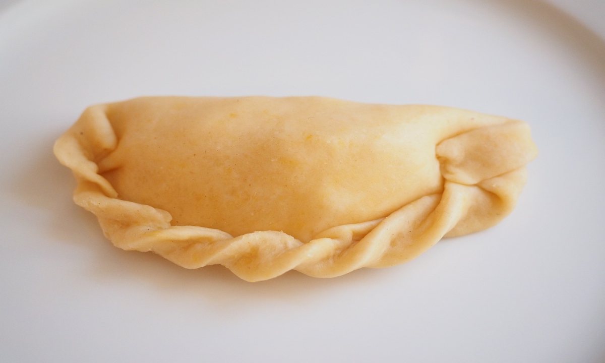 - Poi con un po’ di acqua e un pennellino (o un dito) bagnate il bordo dei cerchi; piegateli a metà per formare il sofficino e pigiate le estremità per chiuderlo. Potete anche aiutarvi con i rebbi di una forchetta per sigillarli perfettamente e non rischiare che il ripieno esca durante la cottura.