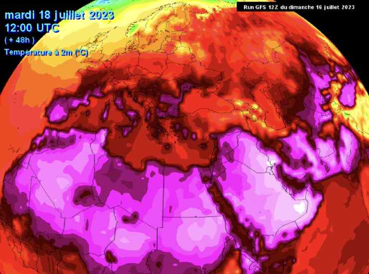 Fasce di calore e temperature previste per il 18 luglio su parte dell’emisfero Boreale. Foto Twitter @MMmarco0