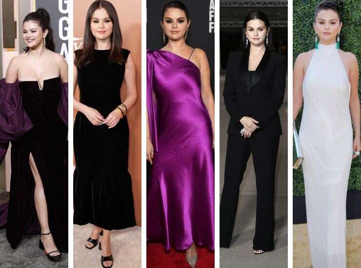 Sul tappeto rosso della première di Only Murders in the Building della seconda stagione, organizzata a New York, l’attrice ha indossato un abito sparkling, d’argento, rivestito di paillettes e con mantella ton sur ton. Il long dress è firmato Michael Kors. I gioielli invece sono di EFFY. Stessa serie TV, ma diversa première. Al FYC Event a Los Angeles, ha proposto un minidress, un abito chemisier bianco latte di Prada con sandali silver di Jimmy Choo. Al panel organizzato dalla Disney, a maggio 2022, ha indossato un completo giallo crema di Mango. Sul red carpet di Critics’ Choice Awards 2022, Selena Gomez ha proposto un abito mantella rosso ciliegia di Louis Vuitton. Per i SAG Awards, invece, ha scelto un abito nero in velluto con maniche a sbuffo di Oscar de la Renta. A ravvivare il look gioielli Bulgari.