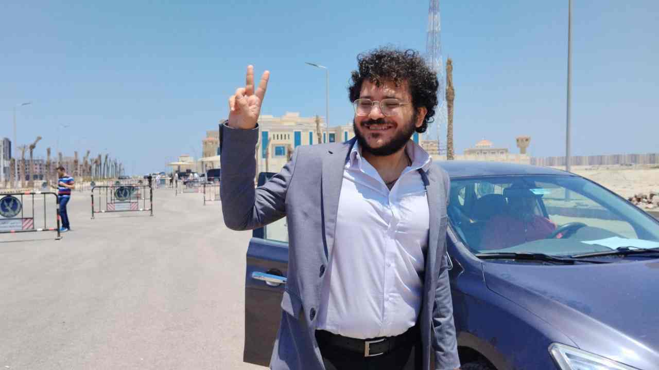 Patrick Zaki appena liberato il 20 luglio a Mansura, Egitto. Foto Ansa/Epa Hossam Rabie