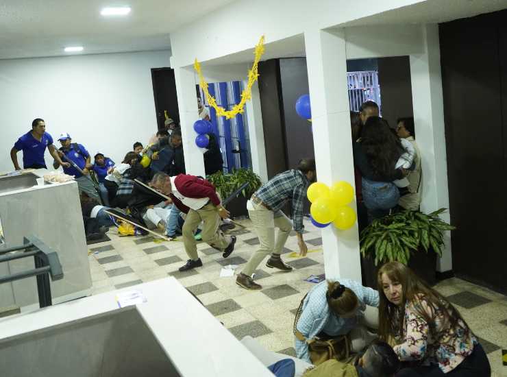 Partecipanti alla manifestazione per il Villavicencio si rifugiano durante la sparatoria. Foto Ansa/Epa