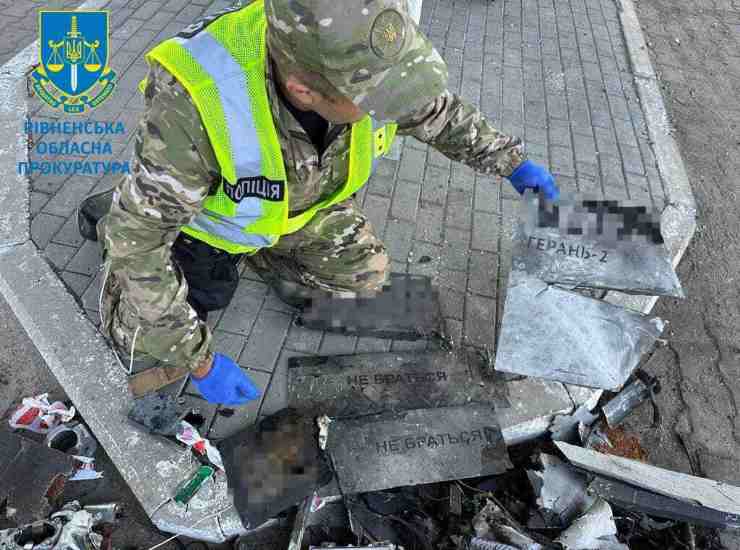 Un drone russo nella regione di Rivne, nell’Ucraina occidentale, il 10 agosto. Foto Ansa