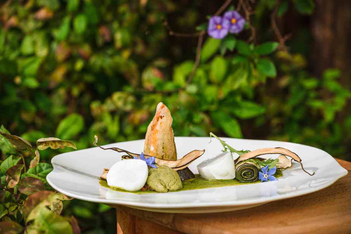 Fiore di Zucca ripieno di ricotta e provola, mozzarella di bufala e zucchine alla scapece. Seguire Le Botti Chef Pasquale Minciguerra @Crediti Bortolan&Carnevali – VelvetMag