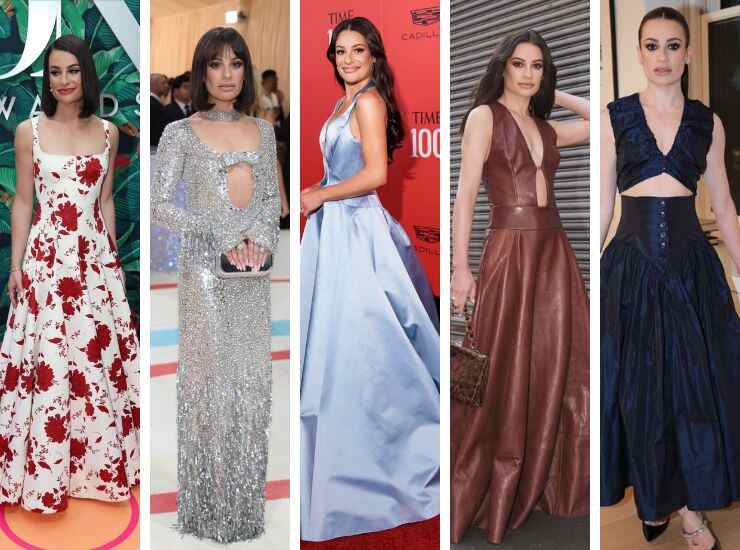 Sul tappeto rosso dell’Annual God’s Love We Deliver Golden Heart Awards organizzato da Michael Kors nel 2022, Lea Michele ha proposto una creazione della maison in oro. Sul red carpet dei Tony Awards di quell’anno, invece, ha preferito un abito in raso total black con dettaglio cut out ad altezza busto e maniche a palloncino di Cong Tri, collezione Spring 2022. Alla première di Spring Awakening: Those You’ve Known a New York nel 2022, invece, ha scelto un abito che gioca con le trasparenze di Jason Wu. All’amfAR Gala di Los Angeles, nel 2019, ha optato per un abito floreale dalle vibes barocche di Reem Acra. Infine, per i GLAAD Media Awards nel 2018, ha optato per uno slip dress in raso, sfumatura avorio a collo alto, di Galvan London.