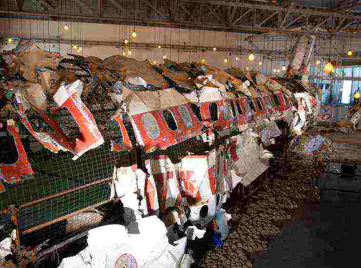 Al Museo della strage di Ustica, a Bologna, l’aereo ricostruito. Foto Ansa/Max Cavallari
