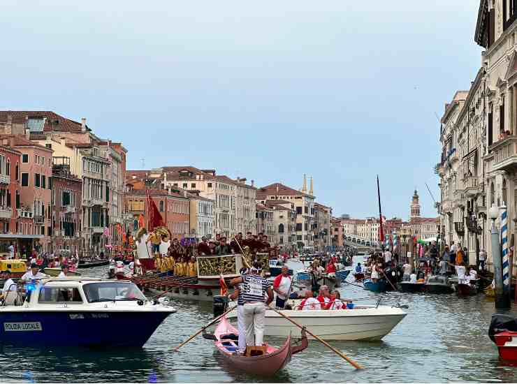 Regata storica sul Canal Grande a Venezia. Foto Twitter @LuigiBrugnaro