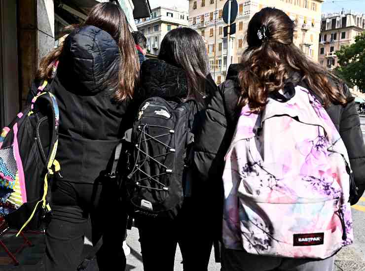 Studentesse all’uscita dal loro istituto scolastico a Genova. Foto Ansa/Luca Zennaro
