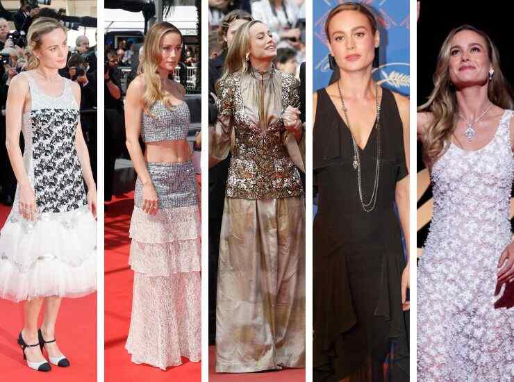 Per Jeanne du Barry, invece, ha optato per un abito in oro con chiffon e paillettes sempre Chanel Resort. Per la cerimonia conclusiva della kermesse, in occasione della première di Elemental di Disney, ha sfoggiato sempre Chanel Haute Couture. L’abito nude è completamente rivestito da una trama floreale in rilievo ton sur ton. Total black è l’abito in chiffon indossato al gala d’apertura di Cannes 2023, firmato Chanel. Prima ancora di raggiungere la città francese, Brie Larson ha fatto tappa in Italia per la première di Fast X svoltasi a Roma. Dividendo il red carpet con altre stelle del cast come Charlize Theron, l’attrice con sfondo Colosseo ha indossato un abito aderente nero, con maxi scollatura, firmato Atelier Versace. Si tratta di un modello vintage degli Anni ’90. Vi ha abbinato gioielli di Briony Raymond e Anita Ko.