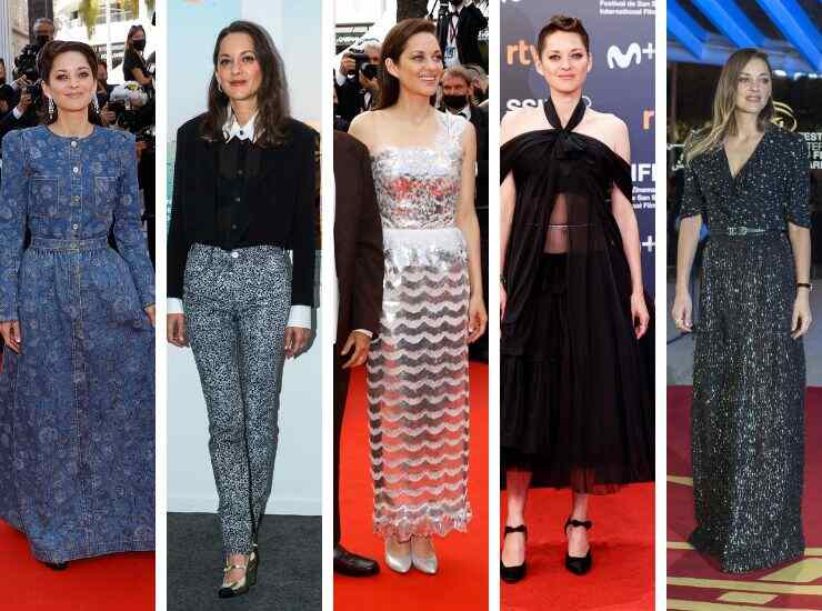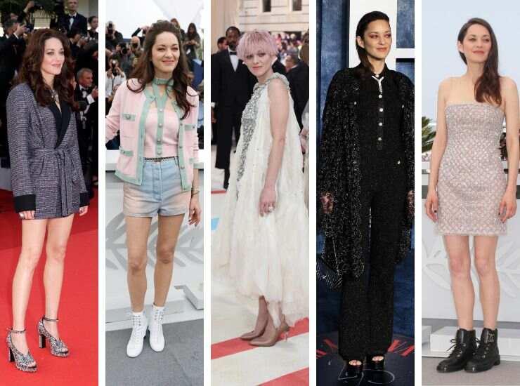 Apparsa anche al Met Gala 2023 per rispettare il dress code, Marion Cotillard ha indossato un’altra creazione della maison francese. Questa volta si tratta di un look vintage, della collezione Fall 2007 Haute Couture, un minidress tempestato di paillettes con mantella in chiffon e strass. Anche ai Vanity Fair Oscar Party l’attrice ha rafforzato il sodalizio con Chanel, questa volta in total black con un completo jumpsuit luccicante. Anche al Festival di Cannes 2022 i suoi look portano la firma della maison. Al photocall l’abito è un minidress in oro.