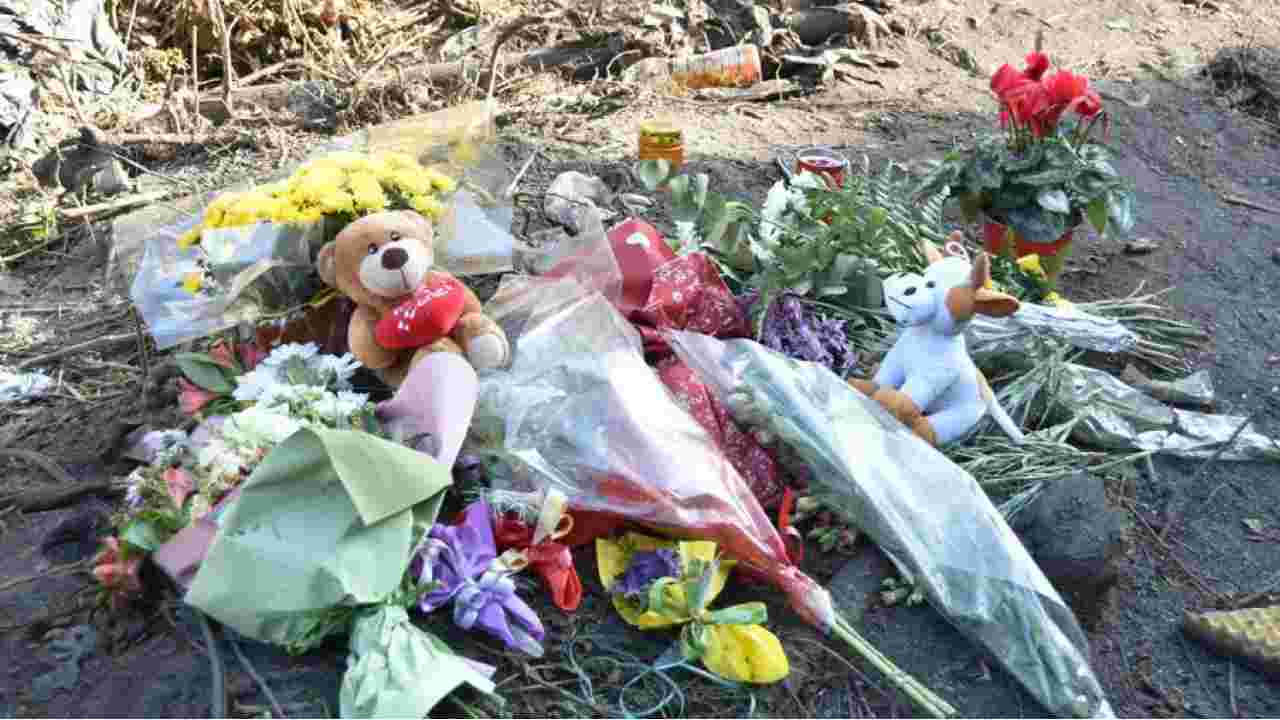 Fiori sotto il cavalcavia di Mestre, nel punto in cui è precipitato il bus. Foto Ansa/Comune di Venezia