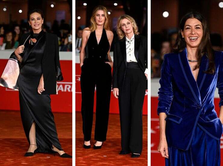 Il nero, del resto, è un colore predominante di questa edizione e la figlia di Margherita Buy vi ha abbinato anche décolleté ton sur ton in velluto. Stessa maison e stessa palette anche per Elena Sofia Ricci coinvolta nel cast di Volare. Per l’occasione, l’attrice ha indossato uno slip dress in raso di Giorgio Armani a cui ha abbinato un blazer ton sur ton e slingback a punta. Anche Giulia Michelini è riapparsa sul red carpet. Per la 18esima edizione della Festa del Cinema di Roma ha proposto un completo leggermente oversize, in velluto e di un’audace sfumatura blu elettrico, di Emporio Armani.