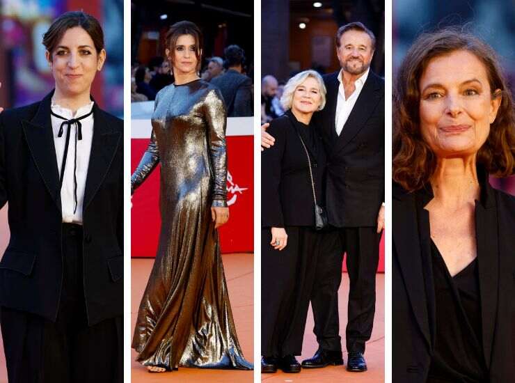 Spazio anche a Caterina Carone, che per il decimo red carpet della Festa del Cinema di Roma 2023 ha preferito un altro look black&white. Il suo completo dal taglio maschile propone pantaloni a vita alta, blazer e camicia bianca, a cui ha abbinato calzature stringate. Teresa Saponangelo invece spezza la palette di tendenza per questa diciottesima edizione indossando un abito argentato. L’attrice ha optato per un long dress luminoso, che calza aderente ma non troppo ed è effetto specchio. Il suo abito porta la firma di Forte_Forte. Vi ha abbinato gioielli Di Properzio. Anche per Agnese Nano il look è un total black. L’attrice ha optato per un completo jumpsuit a cui ha abbinato un blazer.