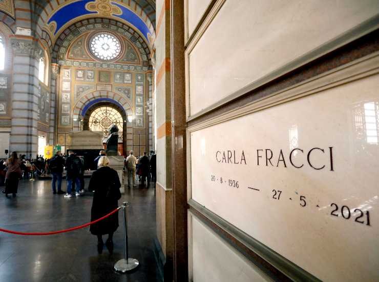 La lapide dedicata a Carla Fracci all’interno del Famedio al Cimitero Monumentale a Milano. Foto Ansa/Mourad Balti Touati