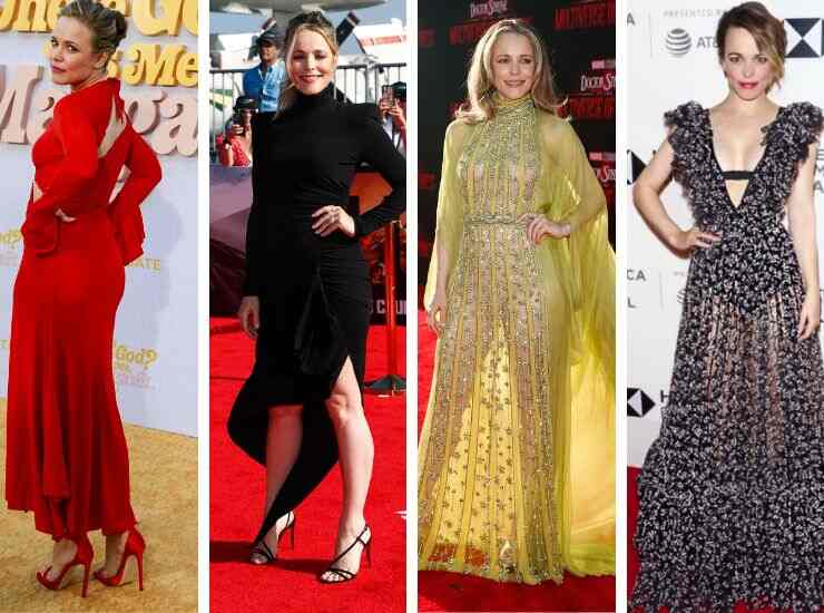 Il 2022 invece è stato l’anno di Top Gun: Maverick. Per la première mondiale, ha sfoggiato un abito total black a collo alto, con spalline a punta e taglio della gonna asimmetrico firmato Alexandre Vauthier della collezione Pre-Fall 2022. Vi ha abbinato sandali intrecciati ton sur ton con tacchi a spillo. Quell’anno Rachel McAdams ha partecipato anche alla première di Los Angeles dedicata a Doctor Strange nel Multiverso della Follia. Sul red carpet Marvel ha sfoggiato un abito che gioca con le trasparenze, a trama nude e ravvivato da pietre preziose. A completare il look è una mantella in chiffon giallo limone. Il suo abito porta la firma di Elie Saab Haute Couture. Prima della pandemia, nel 2018, è apparsa al Tribeca Film Festival per la première di Disobedience indossando un altro abito che gioca con le trasparenze, tempestato di fiori di Giambattista Valli.