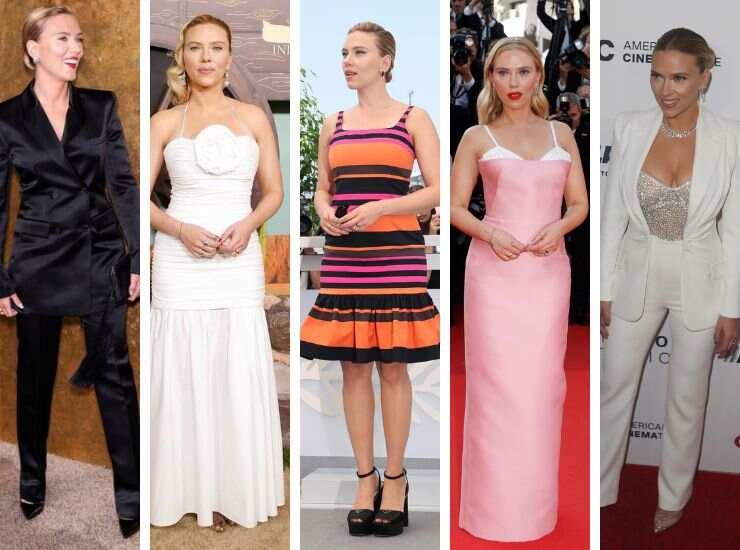 Negli ultimi mesi l’attrice è apparsa più volte sul tappeto rosso. Ad esempio, in occasione dei The Albies della Clooney Foundation for Justice, Scarlett Johansson ha proposto un tailleur total black in raso con giacca doppio petto di Veronica de Piante. Vi ha abbinato gioielli di diamanti di Ana Khouri e il suo look è curato dalla stylist delle star Kate Young. Sul tappeto rosso della première newyorkese di Asteroid City, prima che iniziasse lo sciopero ad Hollywood, ha indossato un abito total white drappeggiato con bretelle sottili e maxi fiore ad altezza scollatura di Carolina Herrera, collezione Resort 2024.