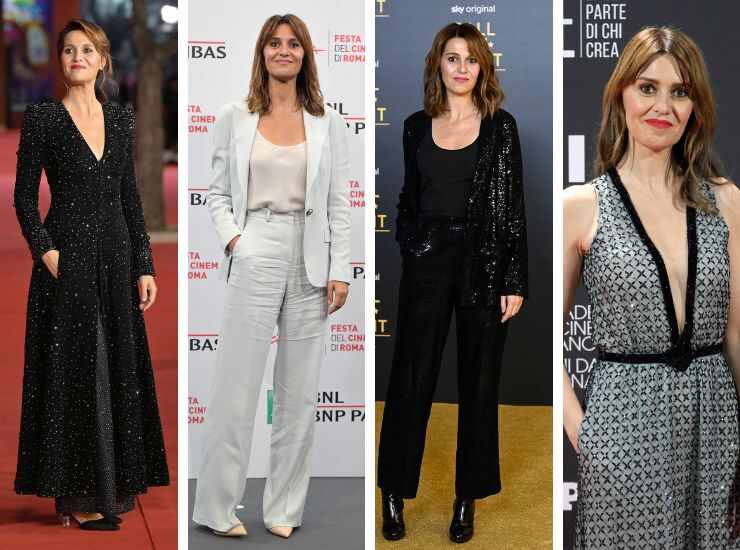 Suo, infatti, è anche il look che ha proposto in occasione dei David di Donatello 2023. Per l’occasione ha scelto un altro completo bianco, sfumatura latte, con décolleté d’argento ravvviate da un tocco sparkling. Ad inizio anno ha preso parte anche alla presentazione dello show di Sky Call My Agent a Roma, optando per un completo total black con blazer rivestito di paillettes. L’attrice è apparsa più volte sul tappeto rosso dei David di Donatello, una delle cerimonie più importanti per il cinema nostrano. Nel 2021, ha indossato un long dress a base nude e rivestito da una trama geometrica con lingue di velluto a ravvivare la scollatura. Il suo look porta la firma di Giorgio Armani. In questo caso ha aggiunto dei gioielli Damiani.
