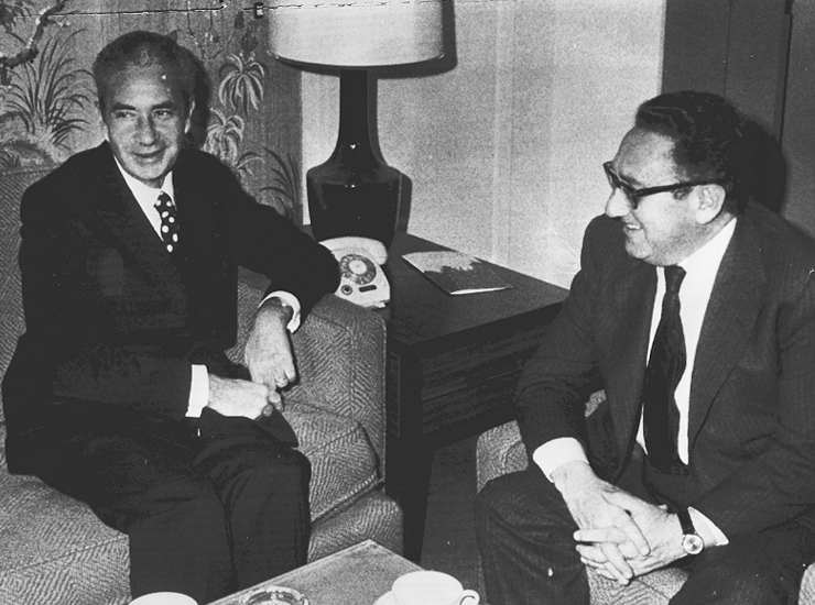 Aldo Moro ed Henry Kissinger in un incontro del 1973. Foto Ansa