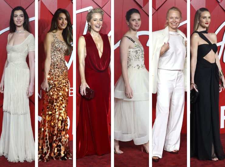 Tornata sul red carpet negli ultimi mesi più glam che mai, Anne Hathaway non avrebbe potuto rinunciare al red carpet dei British Fashion Awards 2023. Per l’occasione ha indossato una creazione vintage di Valentino Haute Couture, un abito avorio con delicati drappeggi. Amal Clooney ha scelto un look sparkling che rincorre sfumature di oro e bronzo, con paillettes di varia dimensione firmato Versace. In velluto e rigorosamente rosso è il look scelto da Gillian Anderson.