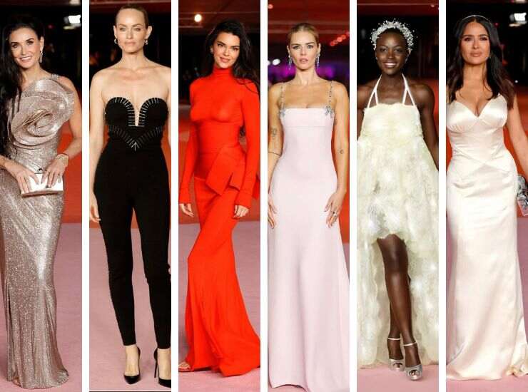 Demi Moore ha indossato una creazione glam di Tamara Ralph, di una delicata sfumatura champagne accompagnata da micro paillettes e maxi fiore ad altezza scollatura. Amber Valletta riporta il completo jumpsuit sul tappeto rosso, fasciata in un look total black di Alaia. Kendall Jenner osa con un abito aderente a collo alto di Fendi di un’elegante sfumatura rosso corallo. Samara Weaving indossa un abito in raso rosa pastello di maison Valentino. Lupita N’yongo ha scelto un look floreale total white di Chanel Couture. E bianco perla è anche l’abito in raso indossato da Salma Hayek firmato Gucci.