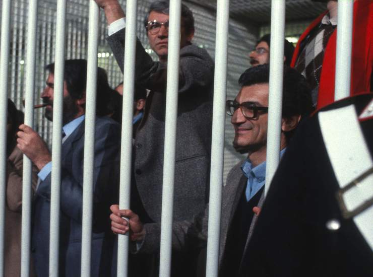 Toni Negri (a destra) nel 1983 durante il “Processo 7 aprile”. Foto Ansa