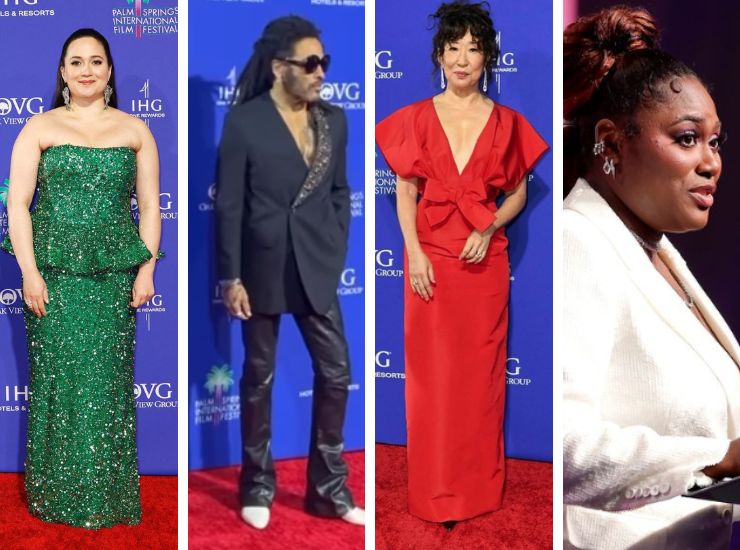 Lily Gladstone, al fianco di Leonardo DiCaprio, brilla sul red carpet dei Palm Springs Film Festival Awards 2024. L’attrice ha scelto una creazione verde smeraldo tempestata di paillettes senza spalline di Rodarte. Sandra Oh invece ha optato per una creazione rosso ciliegia di Carolina Herrera con maxi scollatura e fiocco ad altezza vita. Lenny Kravitz ha abbinato pantaloni in pelle a blazer gioiello. Infine Danielle Brooks ha optato per un tailleur bianco latte con maxi scollatura e décolleté trasparenti.