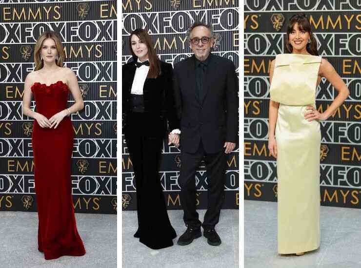 Virale è il video che immortala l’attrice alle prese con del pollo mentre, alle sue spalle, un sarto cerca di apportare modifiche last munite al suo abito. Una vera e propria emergenza glam, che tuttavia è rientrata perché qualche ora dopo Sabrina Impacciatore ha dato del filo da torcere alle attrici oltreoceano con il suo fascino Made in Italy. E non è stata l’unica italiana a brillare sul red carpet degli Emmy: prima di tutto non ha potuto fare a meno della compagnia delle giovani co-star Simona Tabasco e Beatrice Grannò. E poi anche Monica Bellucci ha fatto capolino agli Emmy Awards, affiancando Tim Burton.