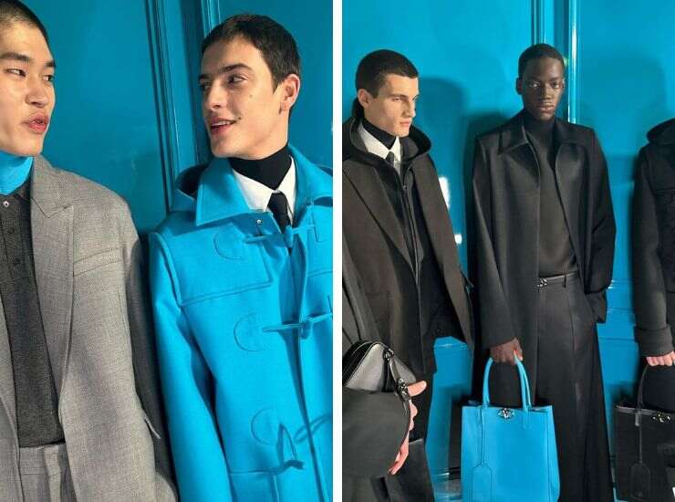 “Gentili, romantici, compassionevoli, aggraziati, umani. Questi sono gli uomini a cui penso perché questi sono gli uomini che mi interessano“, ha concluso il direttore creativo della maison. L’azzurro spezza anche il total black attraverso la potenza dei suoi accessori d’alta moda. Ed è un colore che riappare anche poco dopo, per la collezione LeSalon, seppur in tinta più fatata e femminile come l’acqua marina o il turchese.