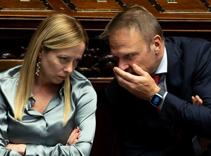 Giorgia Meloni con Francesco Lollobrigida. Foto Ansa/Massimo Percossi