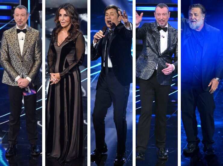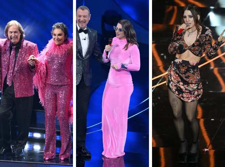 Numerosi gli ospiti di questa terza serata, da Sabrina Ferilli che questa volta ritorna semplicemente come guest dopo l’esperienza della co-conduzione dell’anno precedente, al ritorno di Gianni Morandi fino al fascino internazionale di Russell Crowe. Nel mezzo le esibizioni di 15 artisti in gara, presentati a loro volta dagli altri 15. La top5 della terza serata ha premiato Angelina Mango in cima alla classifica, seguita da Ghali, Alessandra Amoroso, Il Tre e Mr Rain. Lato look, le star hanno alternato il total black introducendo una sfumatura vibrante che ha segnato il 2023 e che accompagnerà ancora per un po’ il 2024. Dai Ricchi e Poveri ad Emma, spicca soprattutto il total pink in tutte le sue sfumature.