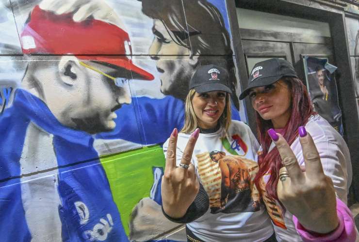 Da sinistra: il direttore di VelvetMAG Angela Oliva. Un murales ritratto da @Antonio Martello