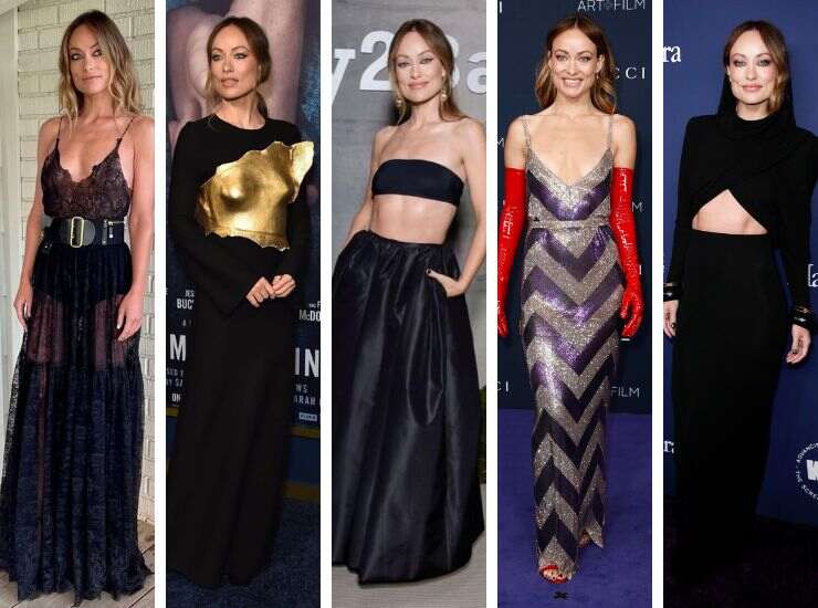 Gessato è invece il tailleur con giacca monopetto e maxi bottone in oro scelto per l’evento di Schiaparelli organizzato a Los Angeles con numerose star. Naturalmente il look porta la firma della maison. Nel 2023 è anche tornata al Met Gala proponendo un look vintage per un’edizione dedicata a Karl Lagerfeld. Di fatto il suo look total white con dettagli gioiello in oro e cut out ad altezza fianchi è firmato Chloé e si rifà all’abito di Karl Lagerfeld del 1993. Sul red carpet dei Vanity Fair Oscar Party 2023, ha scelto un long dress monospalla bianco panna in raso con crop top in pelle total black di Gabriela Hearst. Vi ha abbinato preziosi di Boucheron. Alla première di Los Angeles per Babylon, Olivia Wilde ha sfoggiato un blazer dress con gonna in chiffon e rouches di Saint Laurent.