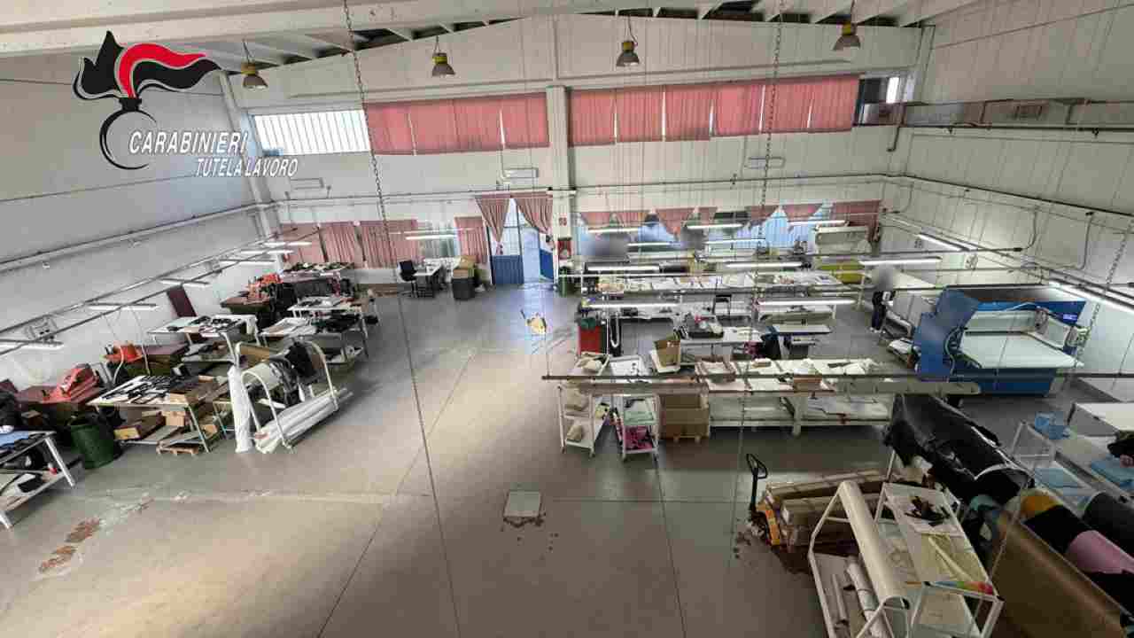 Un opificio che lavorava per la Giorgio Armani. Foto Ansa/Carabinieri