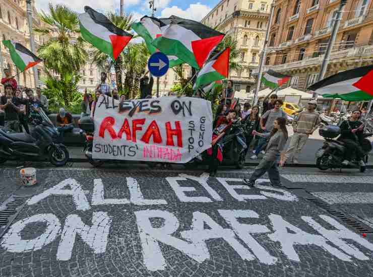 La protesta a Napoli della Rete degli studenti per la Palestina, il 10 maggio 2024. Foto Ansa/Ciro Fusco