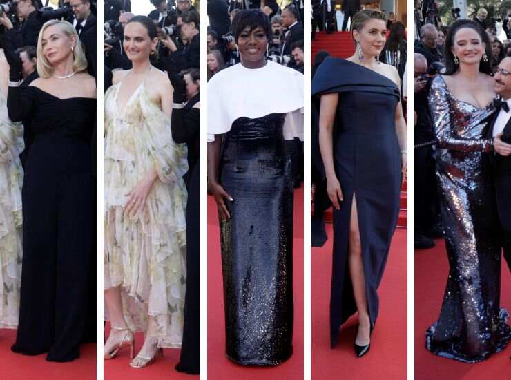 Emanuelle Beart, invece, resta fedele al total black con un completo jumpsuit con scollo a barchetta in chiffon e mantella ton sur ton di Ami Paris. Anche Viola Davis ha optato per un look total black in paillettes accompagnato da una micro mantella bianco latte con bordo asimmetrico. Di un’elegante sfumatura di blu è l’abito monospalla in raso indossato da Greta Gerwig, che conclude la sua esperienza da presidente a Cannes con un abito di Celine. Paillettes anche per Eva Green: il suo ultimo abito alla Croisette è d’argento lucido con scollatura a cuore di Del Core.