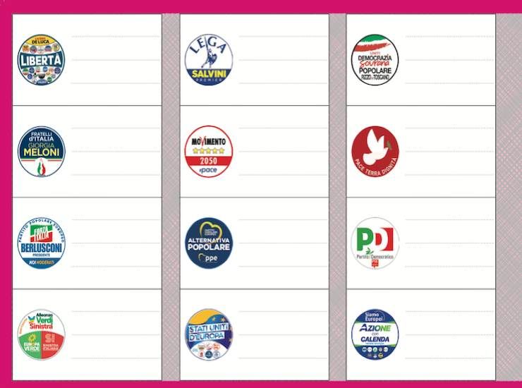 Sulla scheda per votare alle elezioni appaiono dei simboli tondi che rappresentano le varie liste elettorali, singoli partiti o gruppi di partiti. Si vota mettendo una X sul simbolo della lista che si vuole votare, con la matita copiativa fornita dagli scrutatori al seggio.