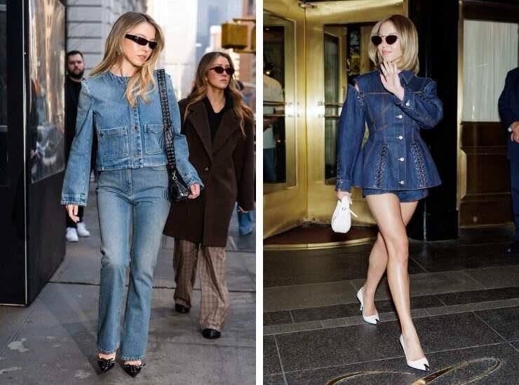 Ad anticipare il trend già durante l’inverno ci aveva pensato proprio Sydney Sweeney. A febbraio, durante la settimana della moda newyorkese, l’attrice aveva scelto un look total denim chiaro di Givenchy. Questa volta ha optato per jeans a vita alta e giacca coordinata con maxi tasche ad altezza fianchi.