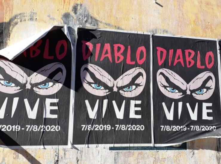 ‘Diablo vive’ – Manifesti a Roma in onore di Fabrizio Piscitelli nel 2020. Foto X @tomkington