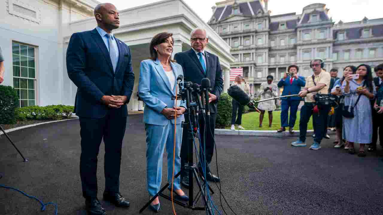 Alcuni governatori democratici dopo l’incontro con Biden il 3 luglio alla Casa Bianca. Foto Ansa/Epa Shawn Thew