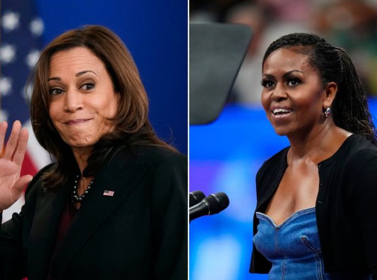 La vicepresidente Usa, Kamal Harris (a sin.) e a ex first lady Michelle Obama. Foto X @infoitestero