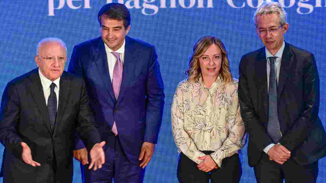Nonostante le tensioni passate tra i due leader politici, l’evento ha visto un clima di collaborazione e cordialità. De Luca ha accolto Meloni con una battuta, presentandosi come “il civile De Luca“, mentre la premier ha risposto con un sorriso e una stretta di mano, invitandolo sul palco per una foto insieme. Questo gesto simbolico ha voluto dimostrare la volontà di superare le divergenze per il bene comune della Campania. Almeno sulla carta. Poi si vedrà, all’atto pratico, che cosa accadrà.